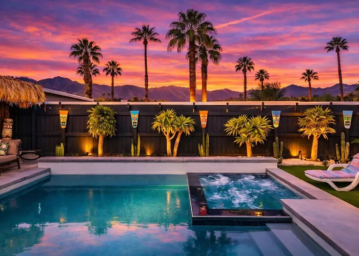 Located approximately 5 minutes' walk from Fritz Burns Park, Mid-Century Modern Home In Beautiful La Quinta offers a patio with a view over the mountain. Pampering guests with a Jacuzzi, the 2-bedroom villa features views of the patio and is nestled around a 10-minute ride from St. Francis of Assisi Catholic Church.